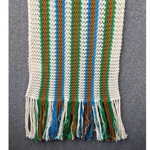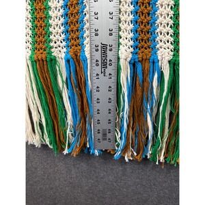 Keywords: Boho, Festival, Beach Coverup, Coastal, Crochet Midi, Striped Knit, 70s Style, Hippie, Summer Dress, Vacation, Artisanal, Textured, Colorful, Layering Piece
