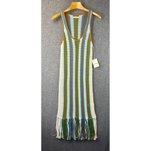 NWT MOTHER The Benefits Dress Size XS Striped Crochet Fringe Midi Cotton Anthro