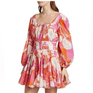 Adorned with a vibrant print, Rhode's Leona minidress features a keyhole cut-out at the neckline and tie cuffs.