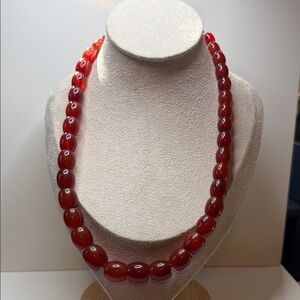 Add a touch of elegance with this stunning red beaded necklace. Perfect for any occasion. Very beautiful piece. 28 inches incredible color see all photos sold as photographed.