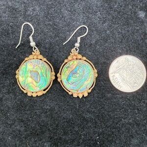 Vintage Silver Gold-tone Alchemia Abalone Shell Drop Earrings Iridescent Green