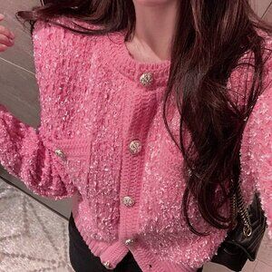 Elevate your everyday look with this pink casual French style cardigan, designed with comfort in mind and featuring double pockets for practicality. Its crew neck and short length create a flattering silhouette, while long sleeves ensure versatility across seasons. Perfect for adding a touch of effortless chic to your wardrobe.