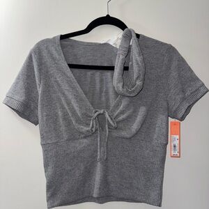 Chic gray knit top by Colsie with a matching headband. Features a stylish front tie detail.