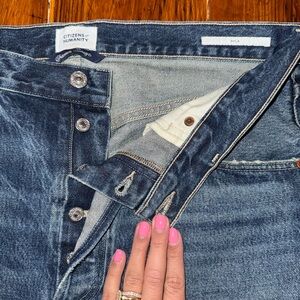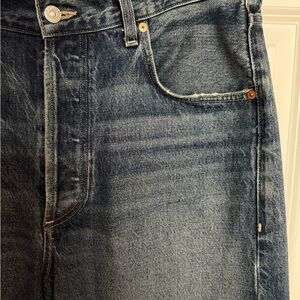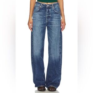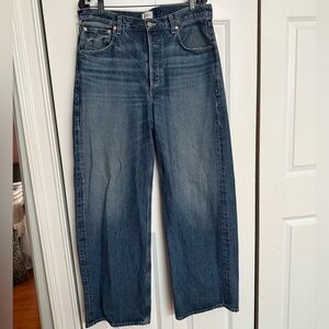 High-rise wide-leg jeans with a relaxed fit. Washed blue denim with subtle fading. Clean five-pocket styling and classic button fly. Soft, broken-in look for easy everyday wear. In the color Claremont.