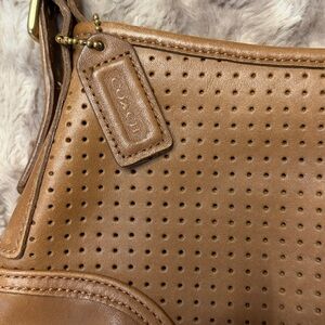 Coach Perforated Brown Leather Shoulder Bag