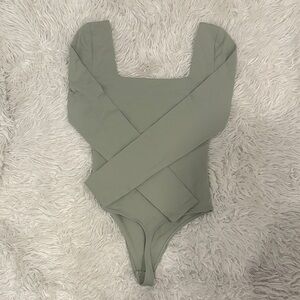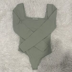 Stylish sage green bodysuit with long sleeves. Perfect for layering or wearing alone.