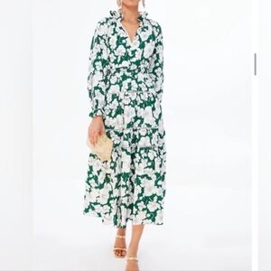Tuckernuck Emerald Green and White Floral Tiered Midi Dress