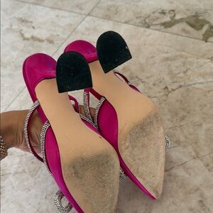 Step out in style with these elegant pink satin heels. Featuring a dazzling rhinestone bow, these shoes are perfect for any special occasion. Add a touch of glamour to your outfit with these stunning heels.