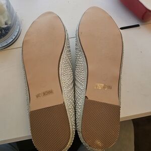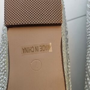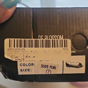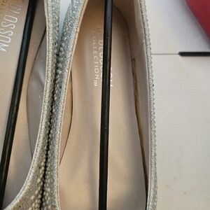 Elegant peep-toe flats with sparkling silver design. Perfect for any occasion. Shoes have never been worn but have been in storage. No imperfections to the outside of the shoes just inside there is a little discoloration. as seen in photos