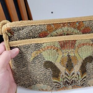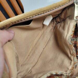 Vintage 1970's Carpet Bags Of America Gold Velvet Shoulder Purse With Ribbon