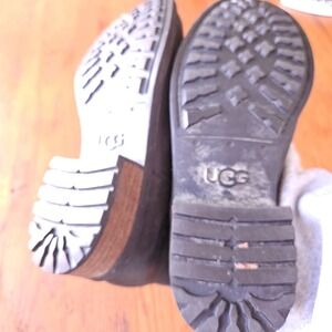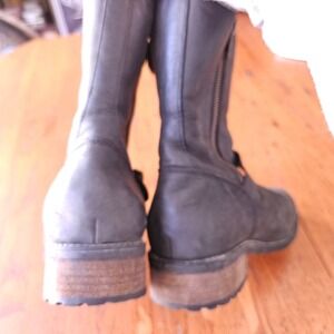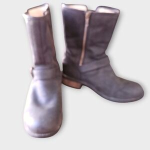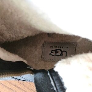 UGG Chaney Black Leather Waterproof Moto Boots Shearling Lined 1007542 Womens 8