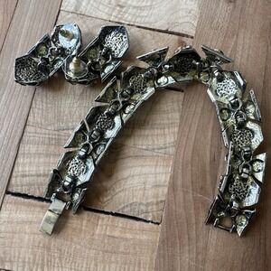 VTG Byzantine Etruscan Mogul Cabs Bracelet 7 Inch w Earrings Multicolor Ornate