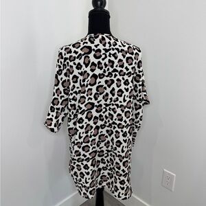 BiBi Front Open Leopard Print Short Sleeve Cardigan (S)