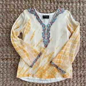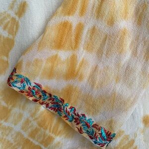 Talisman Puja Saku Shibori Embroidered Boho Blouse Yellow Tie Dye Top Size M
