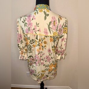 Anthro Bl-nk London Stephanie Floral Boho Blouse V-Neck M