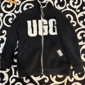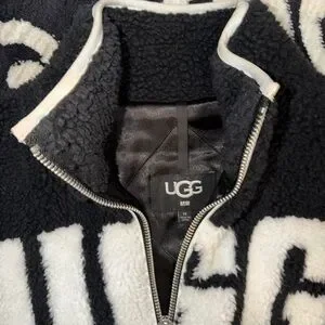 UGG Black and White Sherpa Zip‑Front Jacket with Logo