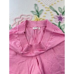 Candace Cameron Bure Pink Smocked Waist Wide Leg Pants Cotton Linen Blend L