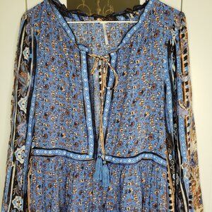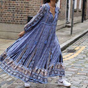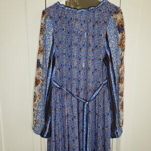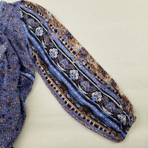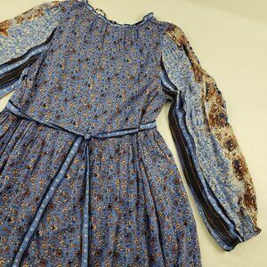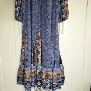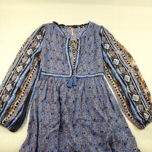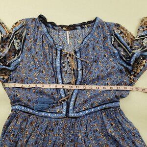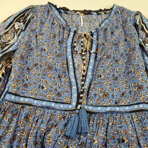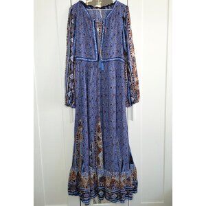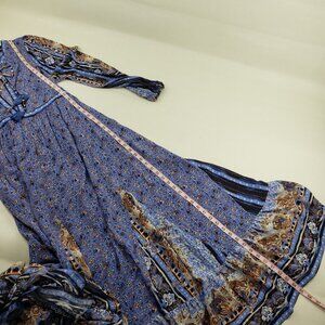 Free People Happy Feelings Maxi Dress Womens Large Blue Boho Peasant Long Sleeve