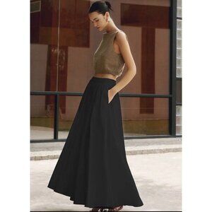 NWT Commense Black Linen Blend Lined Pleated Maxi Skirt w/ Pockets Women's Sz M