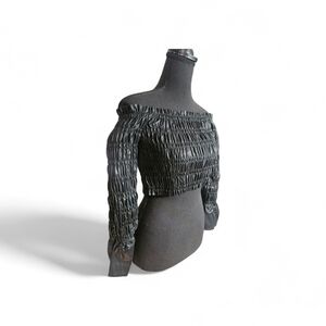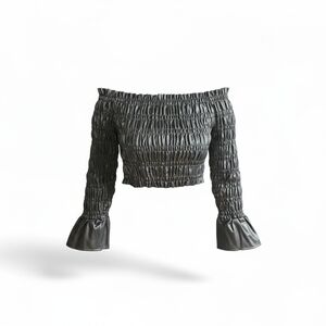 Turn heads with this edgy yet chic Venus black off-the-shoulder crop top! Designed with a fully smocked silhouette and crafted from soft faux leather, this piece delivers the perfect mix of bold style and flattering comfort.