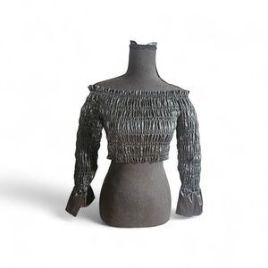 Venus Faux Leather Smocked Off-The-Shoulder Crop Top Size Small