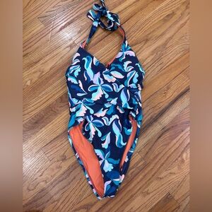 Anthropologie Maeve Violet Halter One-Piece Swimsuit Small