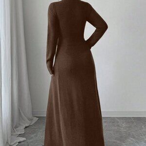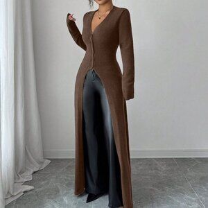 Elevate your late fall style with this coffee brown cardigan, featuring a slim fit, flared hem, and long sleeves. Perfect for adding a touch of elegance to your casual outfits, it boasts a v neck and a cozy, long-sleeved design.