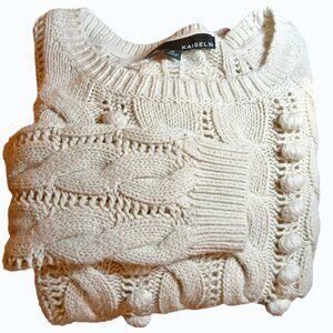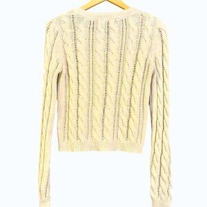 KAISELY Cream Cotton Blend Cable Knit Crew Neck Sweater