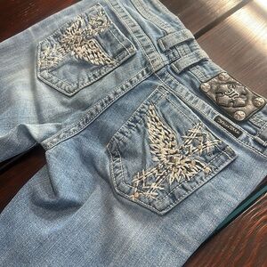 Miss Me Denim Boot Cut Jeans with Silver Embroidery