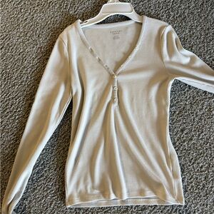 American Eagle Outfitters Beige Ribbed Henley Long Sleeve Top