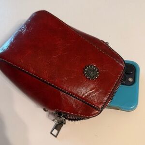 Women’s Soft Mobile Mini Phone Bag Vertical Style Removable Crossbody Strap Red