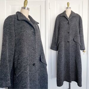 Gorgeous true vintage 1970s dress by Wenjilli. Fitted maxi style in dark grey acrylic ribbed knit with multicolor lurex thread. Crocheted pink & aqua floral detail at neck. Back zip. Bust 28-36“, hips 33-44“, length 60“. Vintage size 9/10, fits like modern S (check measurements), excellent vintage condition.
