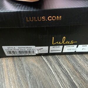 Keywords: Lulus shoes, rose gold heels, pearl embellishment, rhinestone detail, pointed toe mules, satin heels, dressy shoes, formal wear, special occasion, evening shoes, bridal shoes, women's heels, party shoes