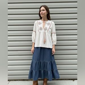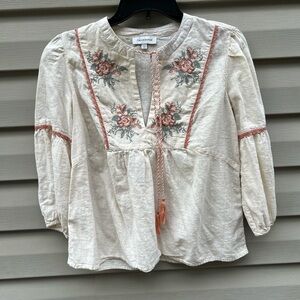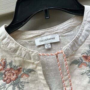 Calligraphie by Anthropologie size S floral embroidered peasant blouse boho