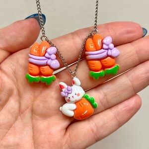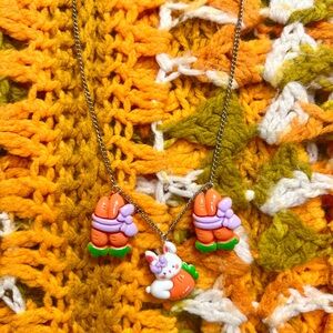 HANDCRAFTED - UPCYCLED 🥕 Easter Bunny & Carrot Multi-Charm Necklace