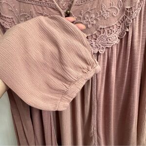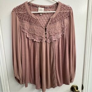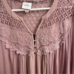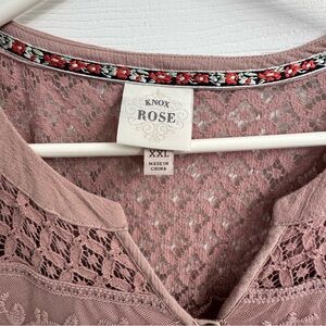 Knox Rose Women's Dusty Pink Lace Detail Boho Blouse - Size XXL