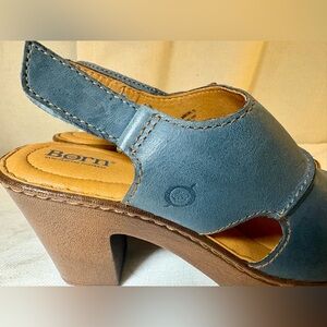 born shoes, born leather sandals, born slingback heels, born peep toe shoes, handcrafted footwear, comfort heels, clog heel sandals, blue leather heels, artisan sandals, boho chic shoes, comfort fashion sandals, spring summer heels, casual luxury footwear