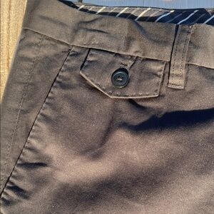 Smart black chinos with a straight leg silhouette. Mid-rise waist and clean front finish. Subtle branded tag detail at pocket. Versatile for work or casual wear.