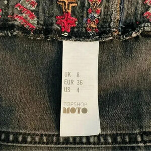 Topshop Embroidered Denim Jacket Jean Jacket Moto Washed Black Rough Edge