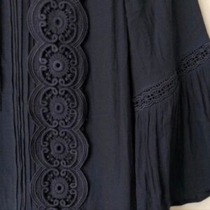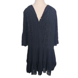 Loft Dress Ruffles and Lace Loose Relaxed Fit Navy Size 6 Six