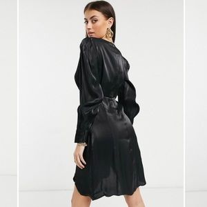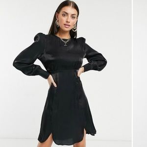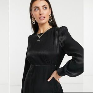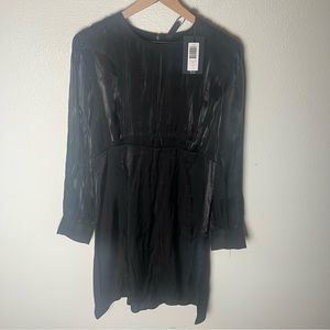 Y.A.S Shine silky long sleeve scalloped bottom mini dress in black SZ XL