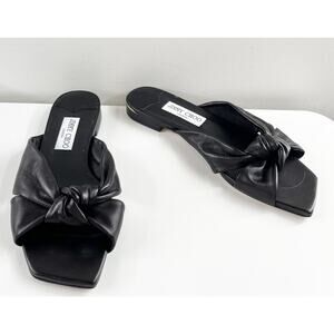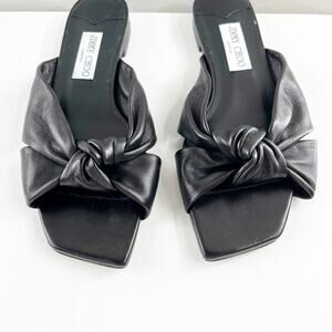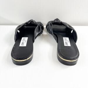 Jimmy Choo Avenue Leather Flat Slide Knot Sandals Black 38.5