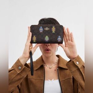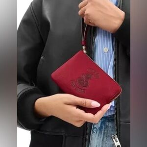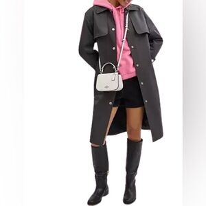 • Exterior details: back and front slip pockets, detachable strap