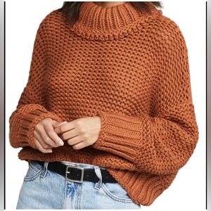 Free People Women’s My Only Sunshine Chunky Knit Ribbed Cropped Sweater Small