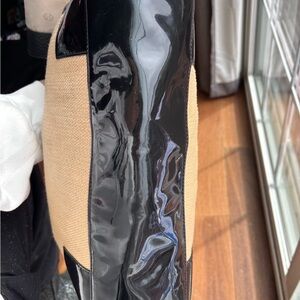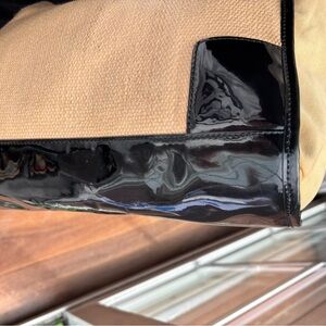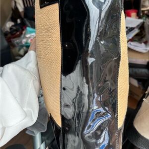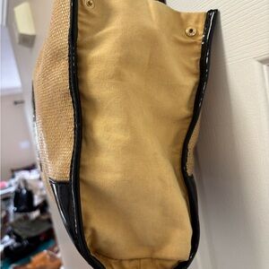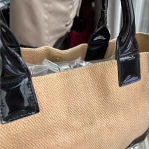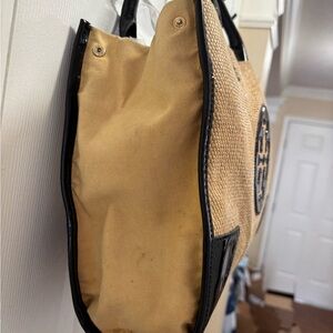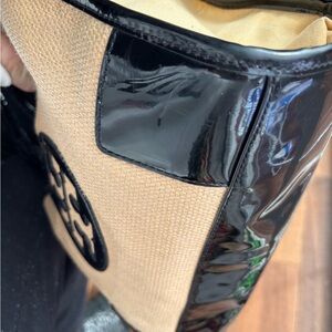 Tory Burch Ella Straw Rafia & Black Patent Trim Tote in VGUC