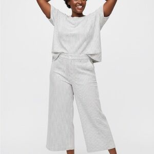 Stylish wide leg crop with classic stripes. Comfortable and versatile for any occasion.