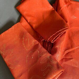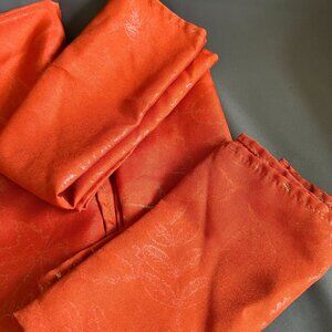 Vintage Orange Jacquard Fabric Tablecloth & Napkins Set With Subtle Botanical Pa