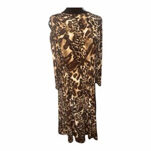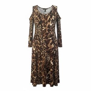 Susan Graver Leopard Print Cold-Shoulder Long Sleeve Dress Women’s Size L