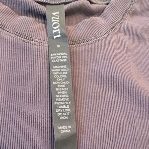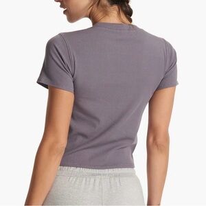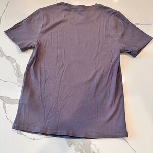 Soft ribbed short-sleeve tee by Vuori. Minimal design with a small logo tag at the hem. Lightweight and breathable for daily wear. Mauve/Light purple. EUC no flaws or stains.