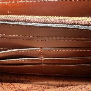 Interior: 1 rear zip pocket, 1 center zip compartment, 6 credit card slots, 2 slip pockets; Signature Map Print faille lining, premium brushed metal logo plaque